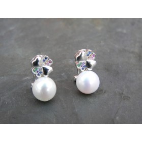 Pendientes de perlas naturales cultivadas y plata de primera ley de 925 milésimas con circonitas de colores y cierre Omega