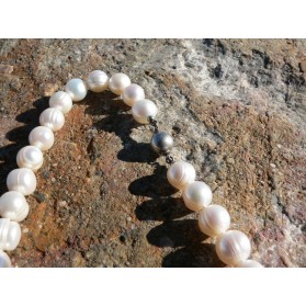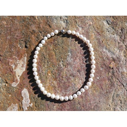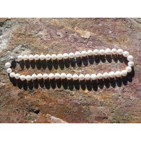 Collar de perlas naturales de río con cierre de plata de primera ley de 925 milésimas, perfectamente anudado perla a perla.