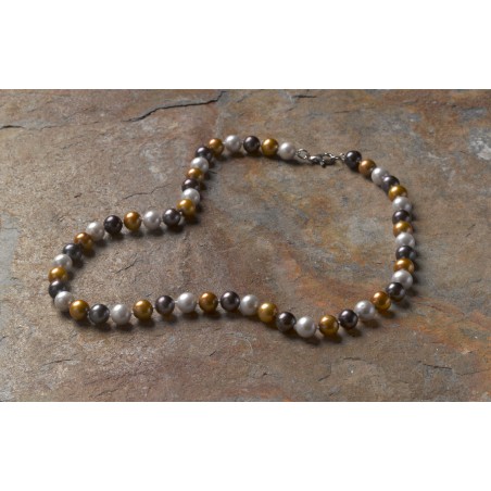 Collar de perlas naturales cultivadas redondas, perfectamente anudado perla a perla, con el cierre y cinco cuentas de plata de primera ley de 925 milésimas