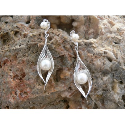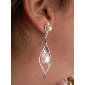 Pendientes de plata de primera ley de 925 milésimas con perlas naturales cultivadas.