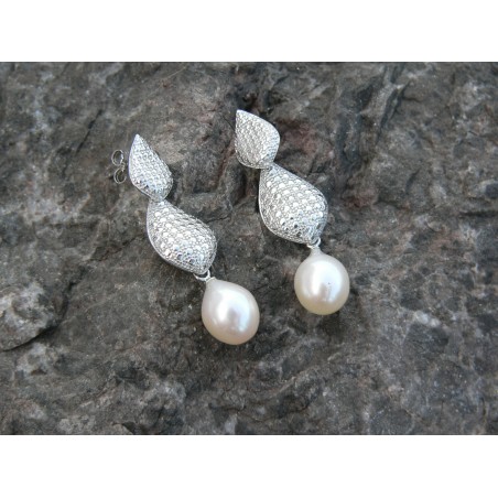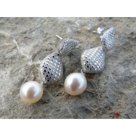 Pendientes de plata de primera ley de 925 milésimas y perlas naturales cultivadas.