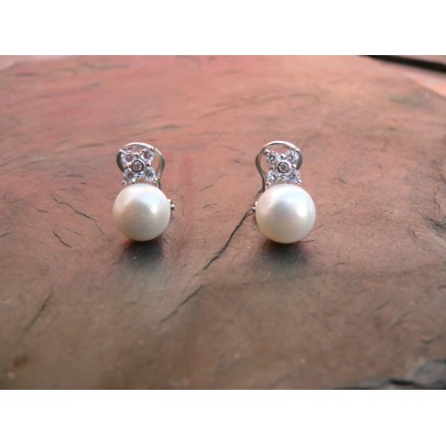 Pendientes de perlas naturales cultivadas y plata de primera ley de 925 milésimas con circonitas y cierre Omega